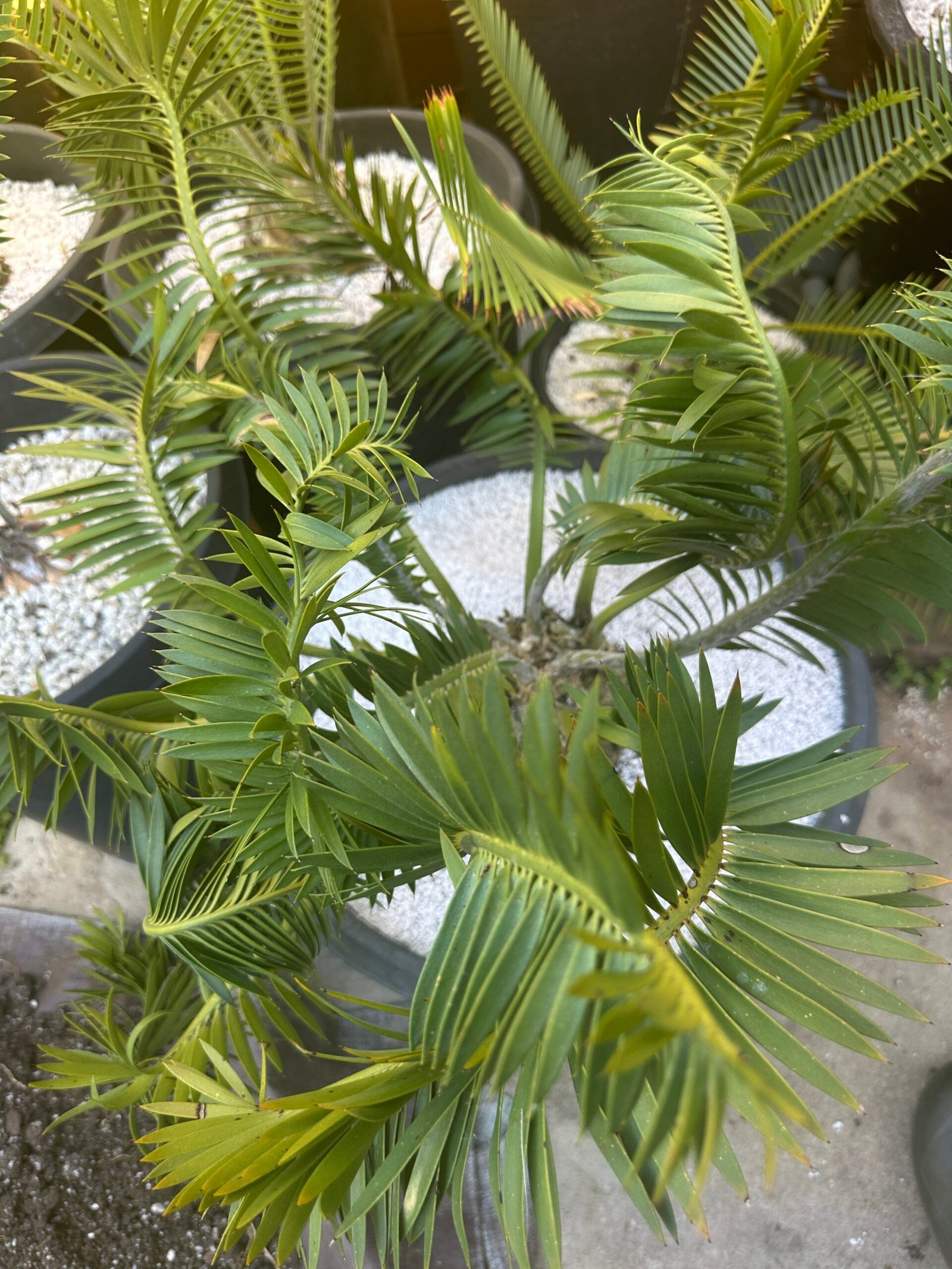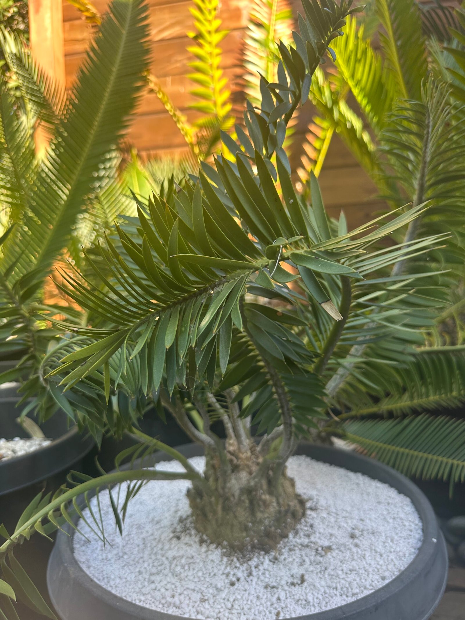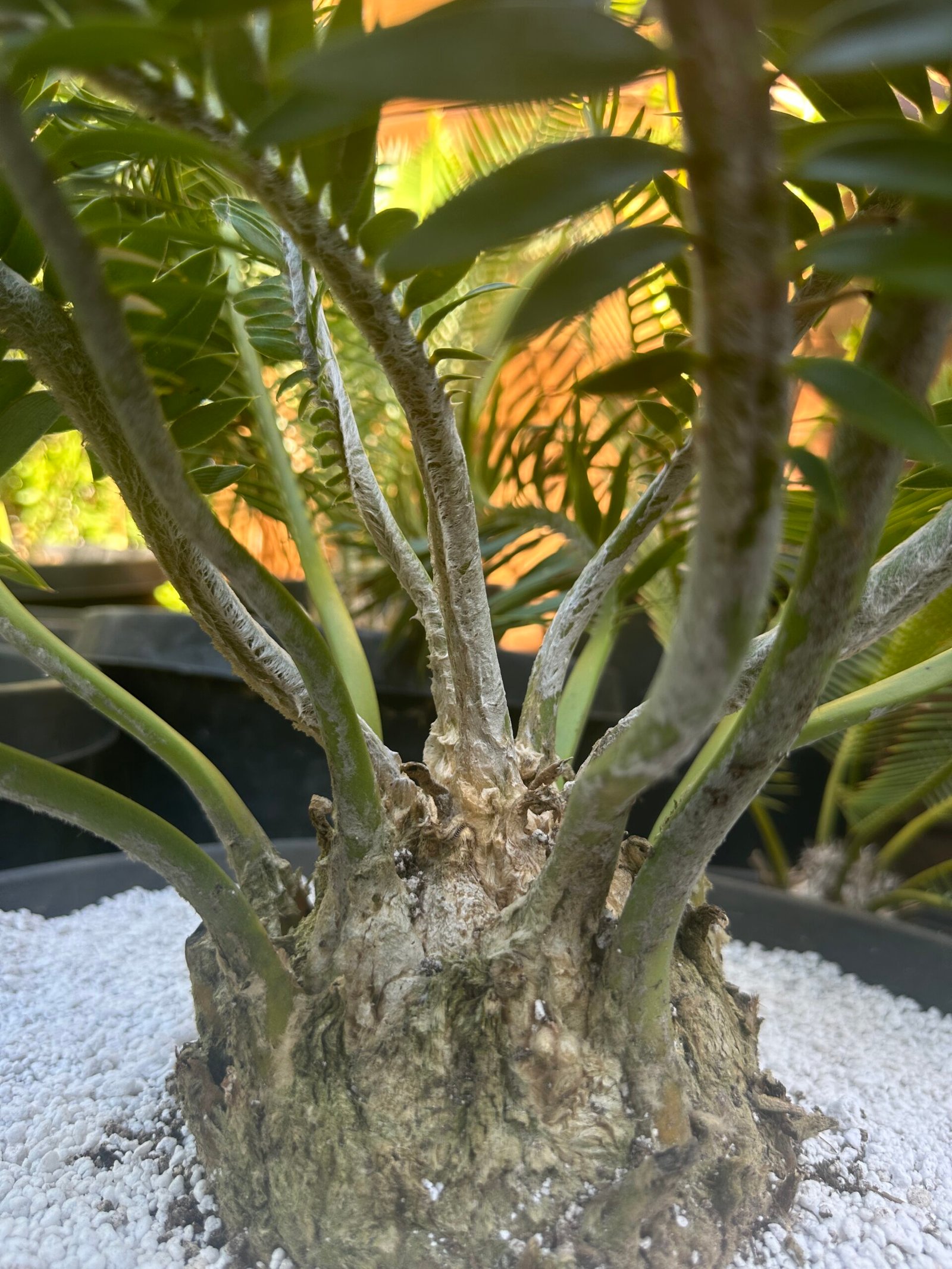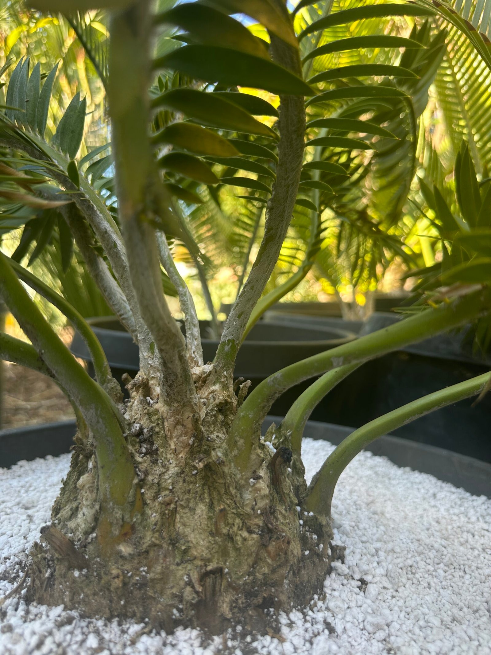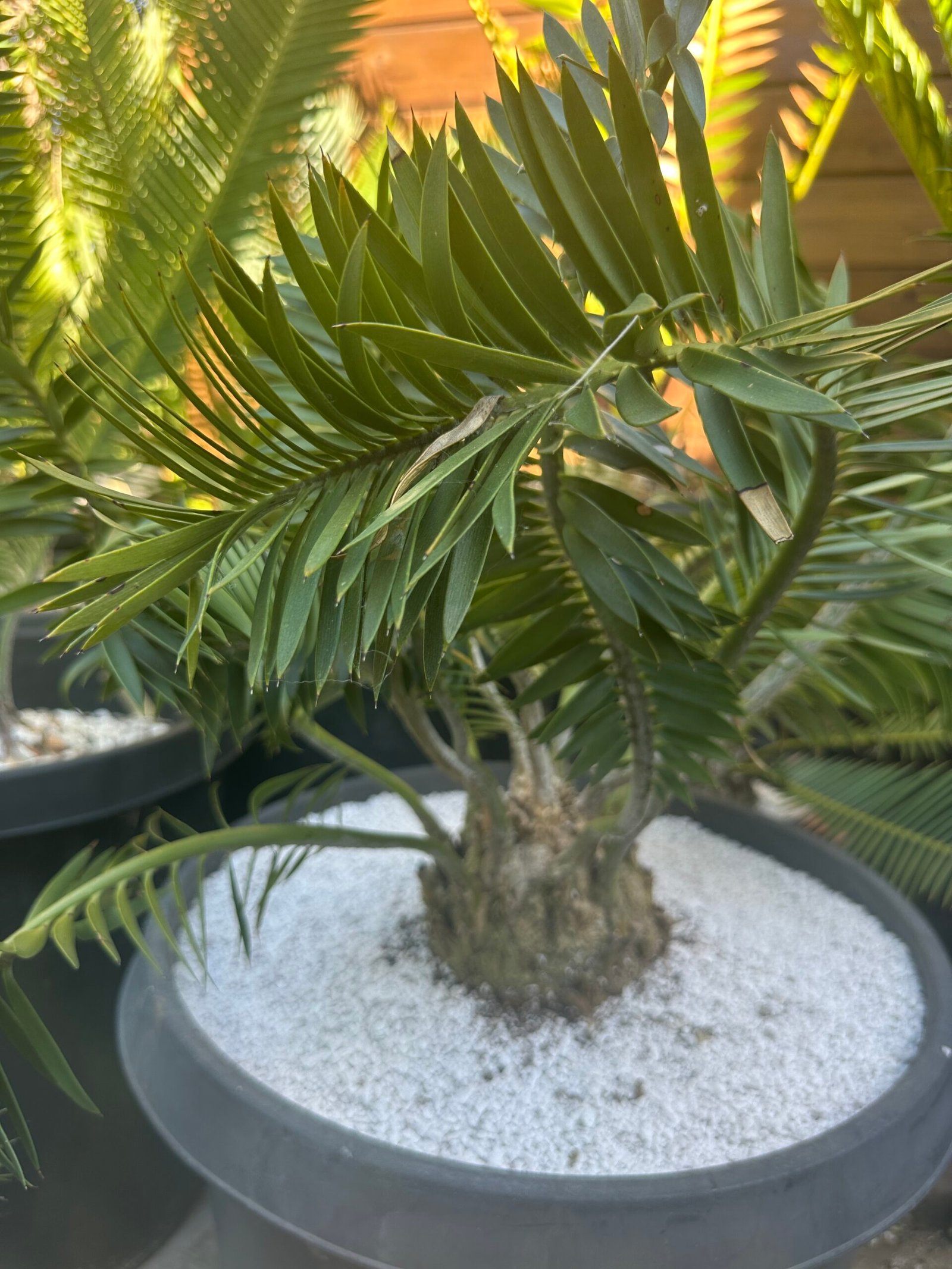 Encephalartos afer (formerly caffer) large plant close to coning size -humansdorp variety with plumose leaf form 5.5″ caudex