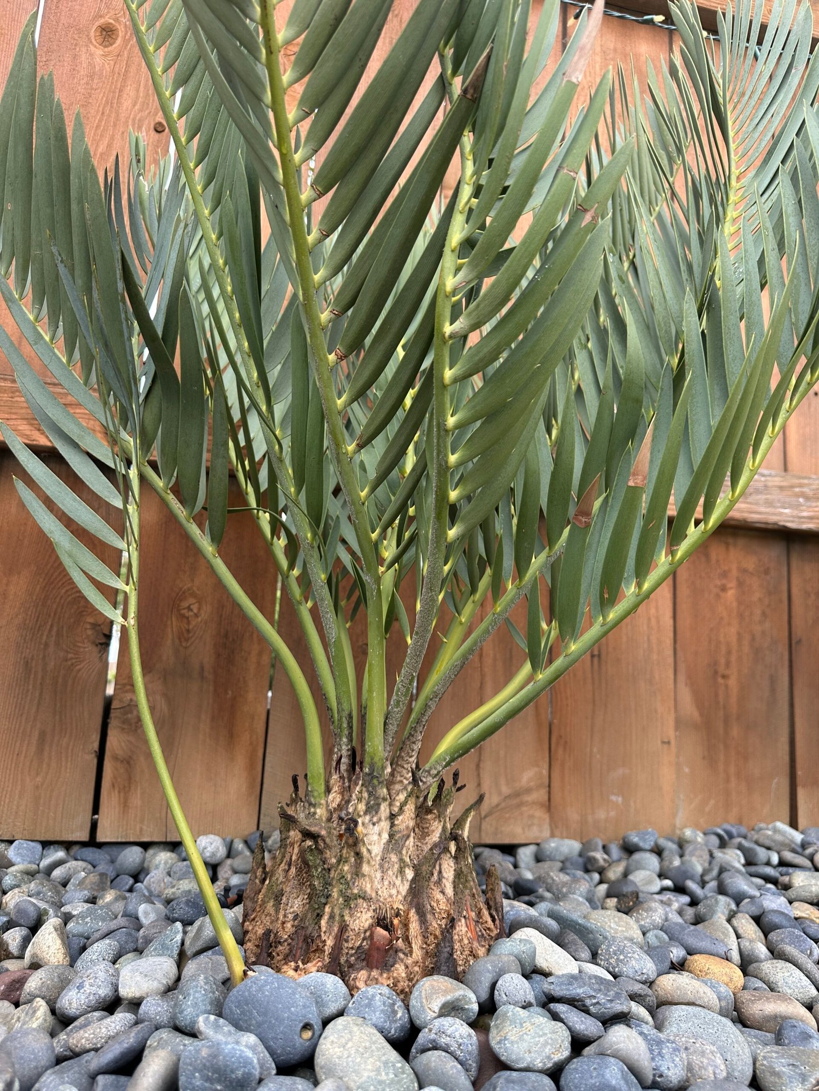 This plant is from our private personal collection and is ready to be the centerpiece of any garden or botanic collection. The caudex is approx. 9-10″ with 1 pup off the main trunk. Pup is in the 2-3” range so there’s about 12” of caudex in total – this is a blue, extra large, collector’s specimen – currently thriving outdoors in the Southern California sun.